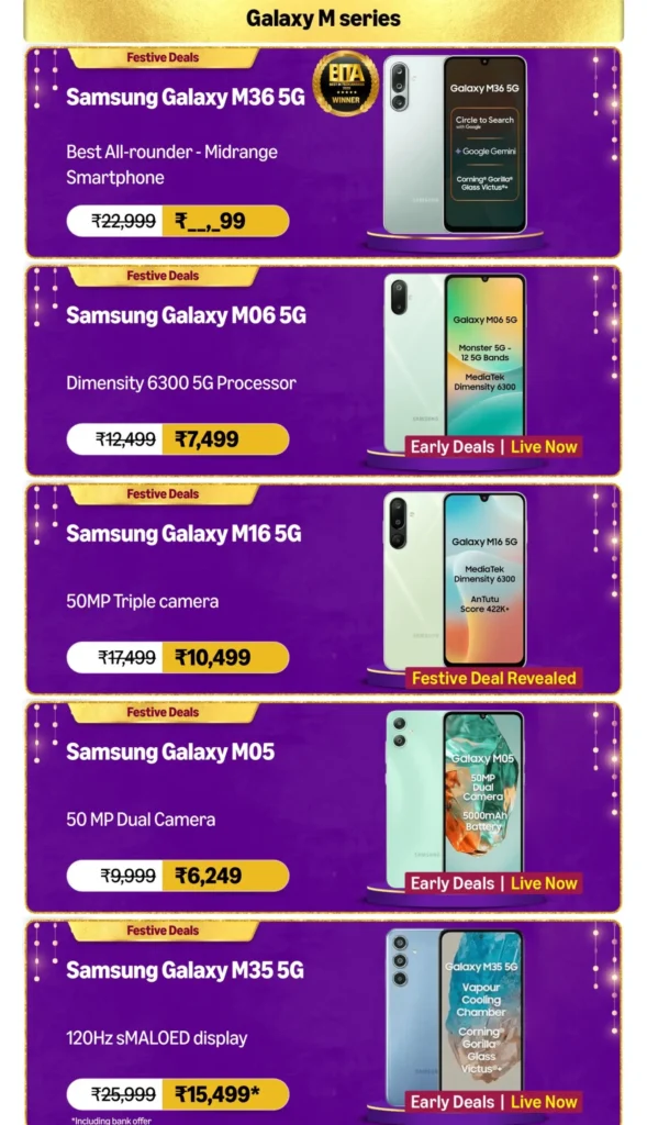 Galaxy F36 | ₹17,499 | ₹13,990 (on Flipkart) |